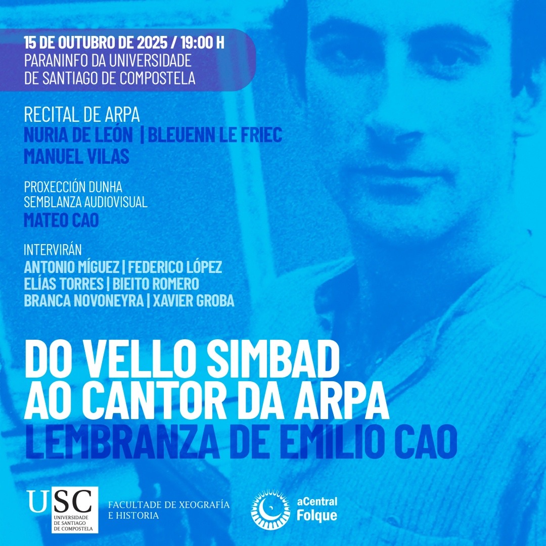 A organización do evento lembra que Cao, nado en Compostela e a quen cualifica como "figura esencial na renovación do folk galego e pioneiro na incorporación da arpa celta ao panorama musical do paÃs" foi alumno da USC e colaborou en diferentes actividades da entidade.